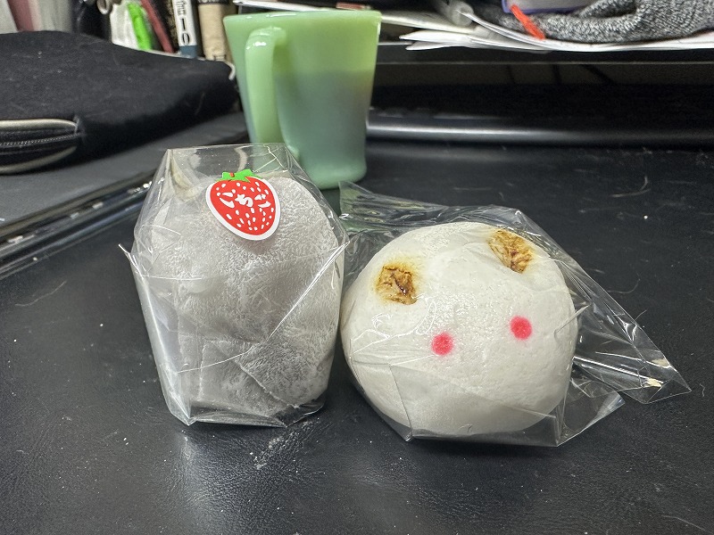 大好きないちご大福とウサギ饅頭。