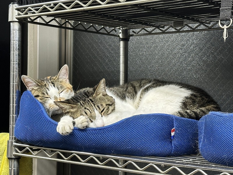 チビ太とくるっぽは、体を寄せ合って仲良くお昼寝。